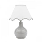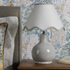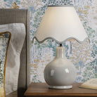 The Laura Ashley Bramhope Table Lamp effortlessly elevates any space, making a perfect addition to any bedside table, desk or sideboard. This gorgeous lamp features a sleek grey ceramic base with a complementing white shade with grey scalloped trim. Perfect for placing on an end table or bedside nightstand, the lamps compact size makes it perfect for smaller areas while still delivering ample lighting.