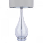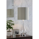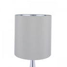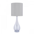 The Bronant Table Lamp by Laura Ashely features smooth lightly smoked glass to compliment the polished nickel finished metal plinth and a tall faux silk tall shade has a silver metallic inner to reflect and diffuse the light. This statement table lamp will enhance your home. Bulb not included; takes 1 x 60W max ES.