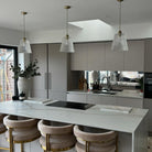 The Large Callaghan single pendant light by Laura Ashley features a fluted solid glass shade, with a feature gold twisted fabric cable. Perfect for a retro industrial style of décor in the kitchen or the dining room.
