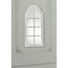 The Coombs window pane mirror from Laura Ashley. An attractive, long rectangular mirror with a distressed ivory finish and an arched top, the Coombs wall mirror will be an eye-catching feature in the living room as well as in the bedroom or hall. Not suitable for bathroom or outdoor use.