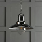 The traditional Laura Ashley Corbridge metal ceiling pendant light just the thing to illuminate a dining table or positioned as a trio above a breakfast bar. With a bright, polished chrome finish, this hat-shaped light fitting will bring a smile to your eyes without causing glare from the side, so you can hang it lower than other lights with more translucent shades.