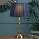 Corey Antique Brass Candlestick Table Lamp & Blue Shade