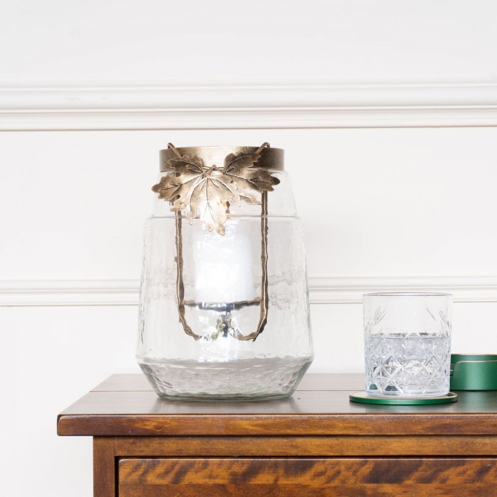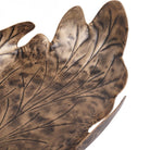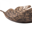 This hand crafted curled Corrina leaf is finished in antique gold and shaped to create a beautiful dish. Length 30 cm. For decorative use only.