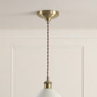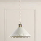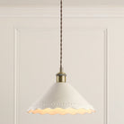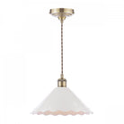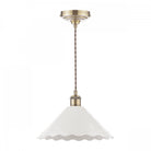 Contemporary and stylish, the Daws Pendant Light features beautiful antique brass metalwork paired with a white ceramic scalloped shade. This gorgeous ceiling light is perfect for your hall, living room or home office.