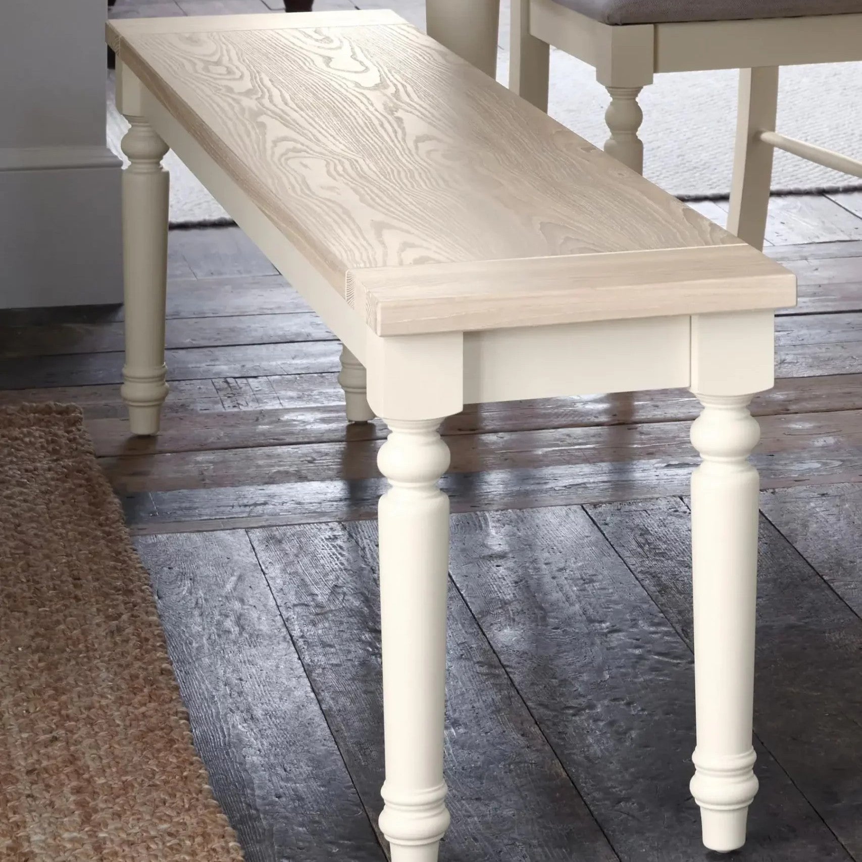 Classically elegant, the hand finished Laura Ashley Dorset Dining Bench feature a gentle chalky finish that works perfectly with the ash seat. The individual character is enhanced by lightly distressed edges. A perfect answer for a convivial meal. Only the legs need to be attached to begin enjoying this piece; full assembly is not required.