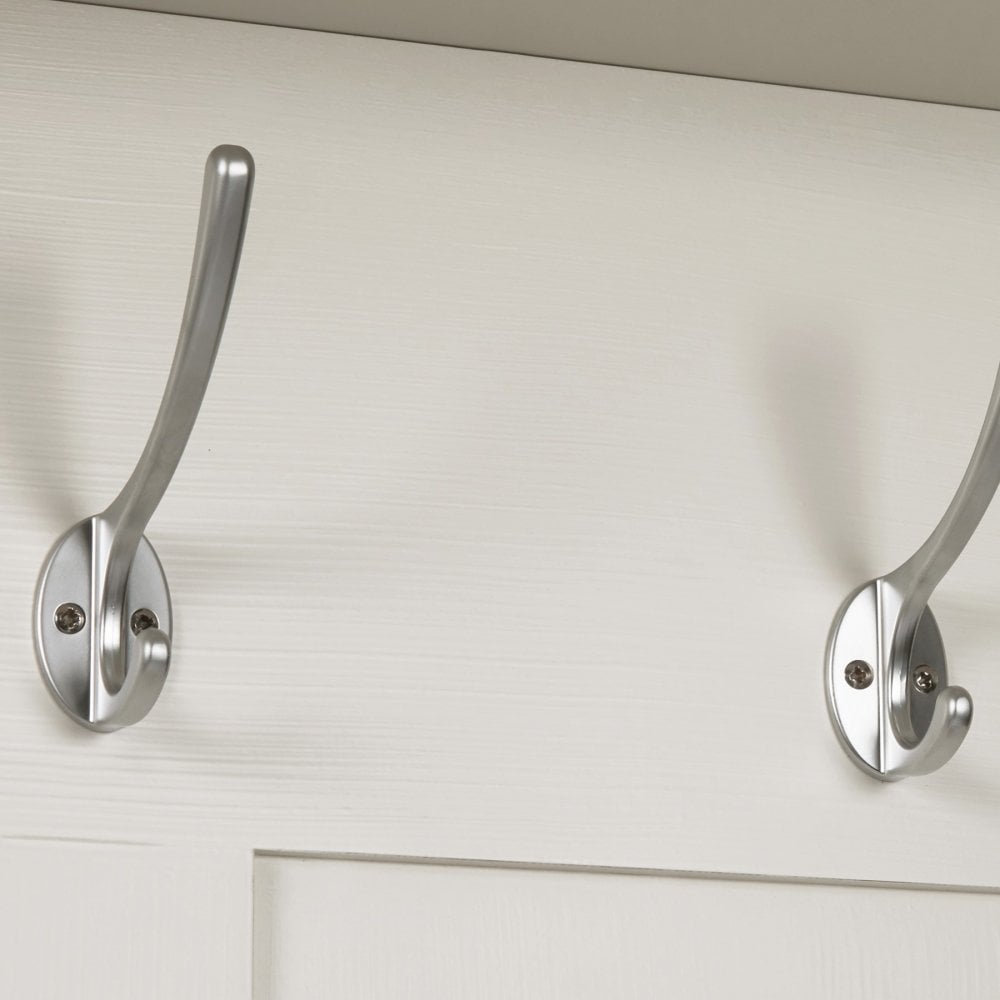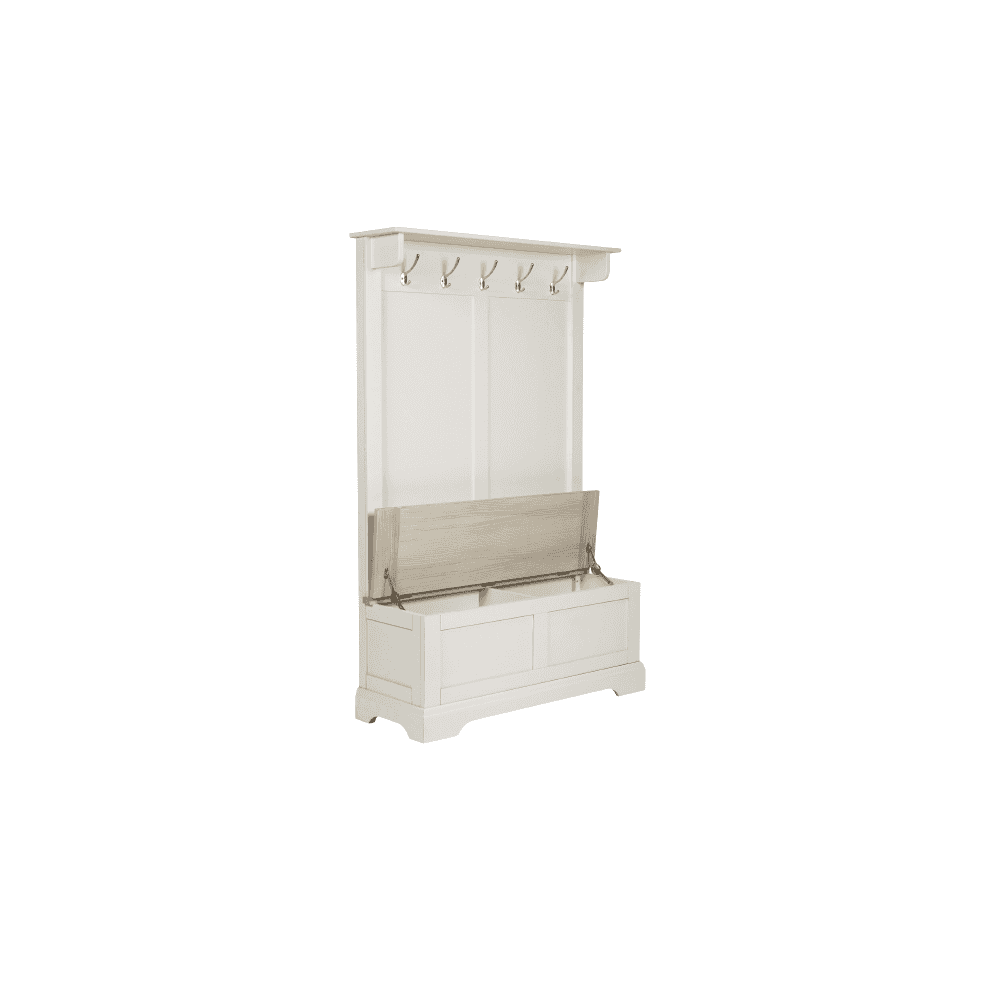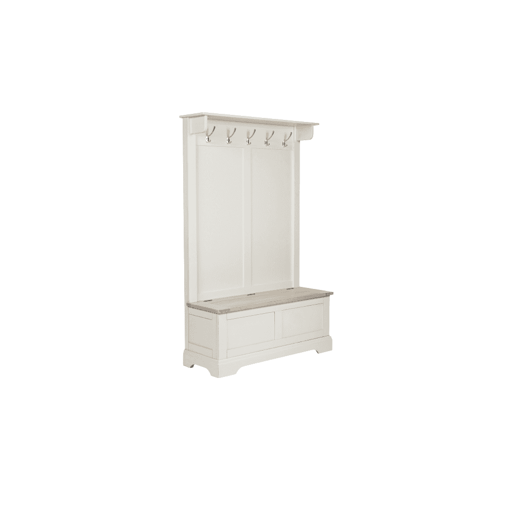 Classically elegant, the hand finished Laura Ashley Dorset Tall Bench With Coat Rack features a gentle chalky finish that works perfectly with the solid ash bench lid. The individual character of the piece is further enhanced by lightly distressed edges and the steel effect coat hooks and hinges. There are five hooks in the upper section and ample storage space beneath in the bench section. Only the back panel needs to be attached to the bench to begin enjoying this piece. Full assembly is not required. Requires two people to lift, Please ensure there is assistance available to meet our driver upon delivery.