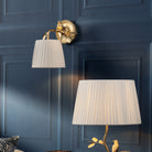 The Laura Ashley Egelton 1 Light Wall Light seamlessly blends classic British design with a modern twist. It features an elegant brass base and a pleated shade, offering gentle, diffused lighting that's perfect for creating a cosy, serene atmosphere in your living room or bedroom.