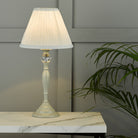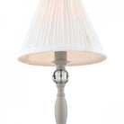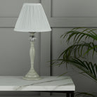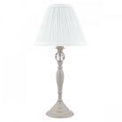 This Laura Ashley Ellis dove grey Table Lamp as an elegant metal spindle base incorporating a pretty faceted glass ball. With a satin-painted finish, this delightful Table Lamp comes complete with an ivory pleated cotton shade.