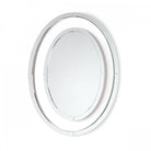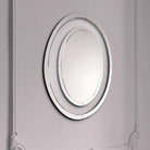 Laura Ashley's Evie collection features a transparent glass border with mirror trim. The mirror appears to float, revealing your wallpaper or painted wall, ensuring the oval Evie mirror fits in with your decor!