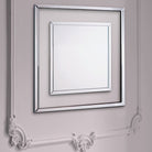 Laura Ashley's Evie collection features a transparent glass border with mirror trim. The mirror appears to float, revealing your wallpaper or painted wall, ensuring the square Evie mirror fits in with your decor.