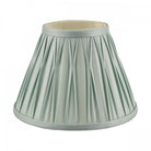The Laura Ashley Fenn lightshade has a classic, slightly angled, Empire drum form. Here we finish it in an elegant, pinched pleat smooth silk in duck egg blue.