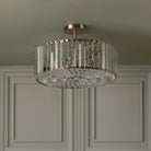 Fernhurst 4 Light Antique Brass & Crystal Semi Flush