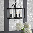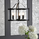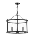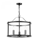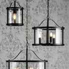 The clean-lined Laura Ashley Harrington ceiling pendant light is a graceful blend of clear glass and sleek metal. A simple, lantern-style drum-shaped case surrounds a suspended trio of lamp-holders, all in a sophisticated black finish for effortlessly elegant looks. The three light Harrington ceiling pendant is a subtle yet stylish piece to illuminate your favourite room and create a bright, inviting space.