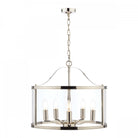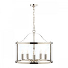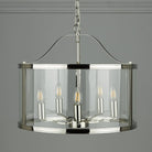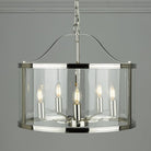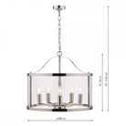 The clean-lined Laura Ashley Harrington ceiling pendant light is a graceful blend of clear glass and sleek metal. A simple, lantern-style drum-shaped case surrounds a suspended quintet of lampholders, all in a vintage finish for an effortlessly elegant look. The 5 light Harrington ceiling pendant is a subtle yet stylish piece to illuminate your favourite room and create a bright, inviting space. Fitting, matching ceiling rose and hanging chain included, plus a discreet cable.