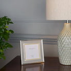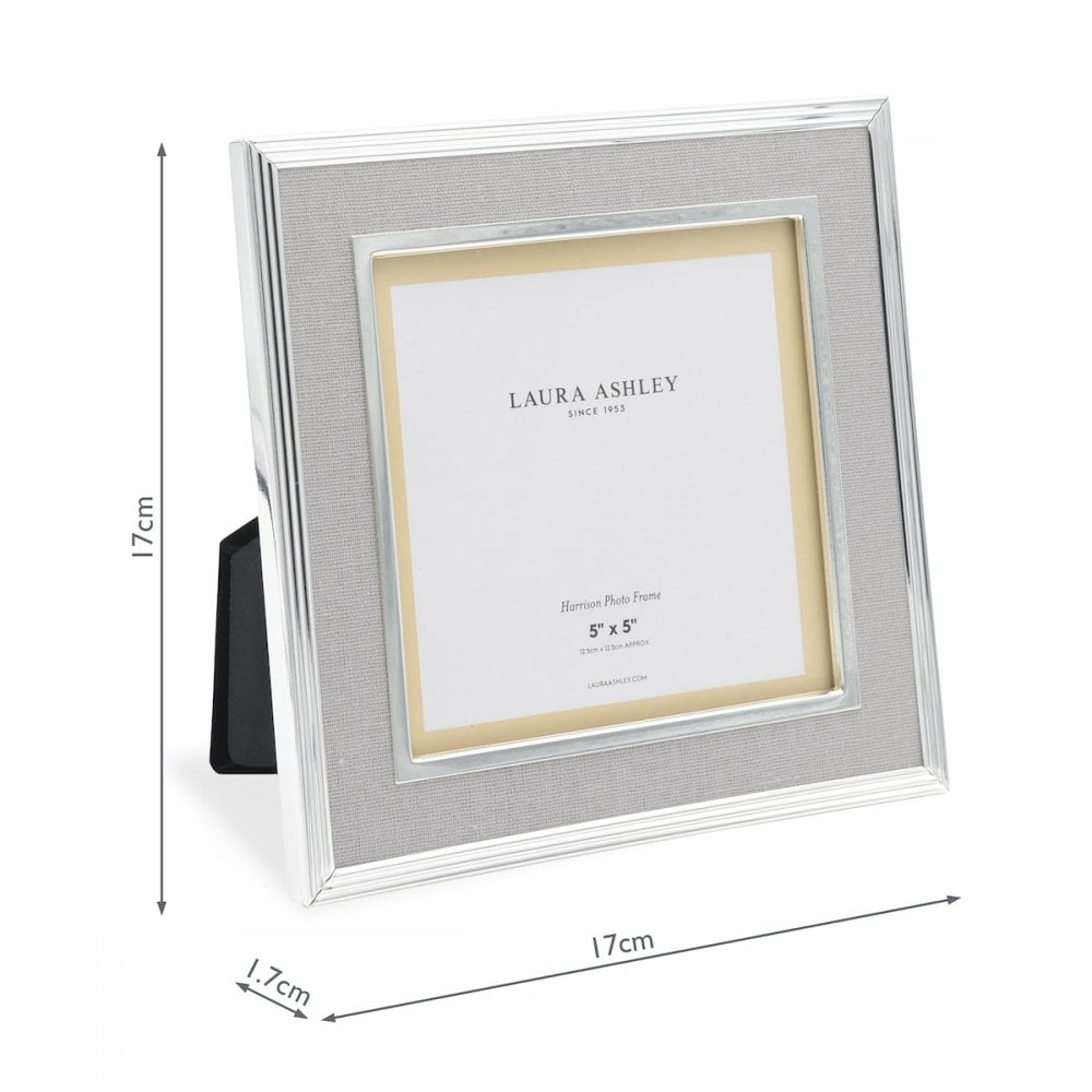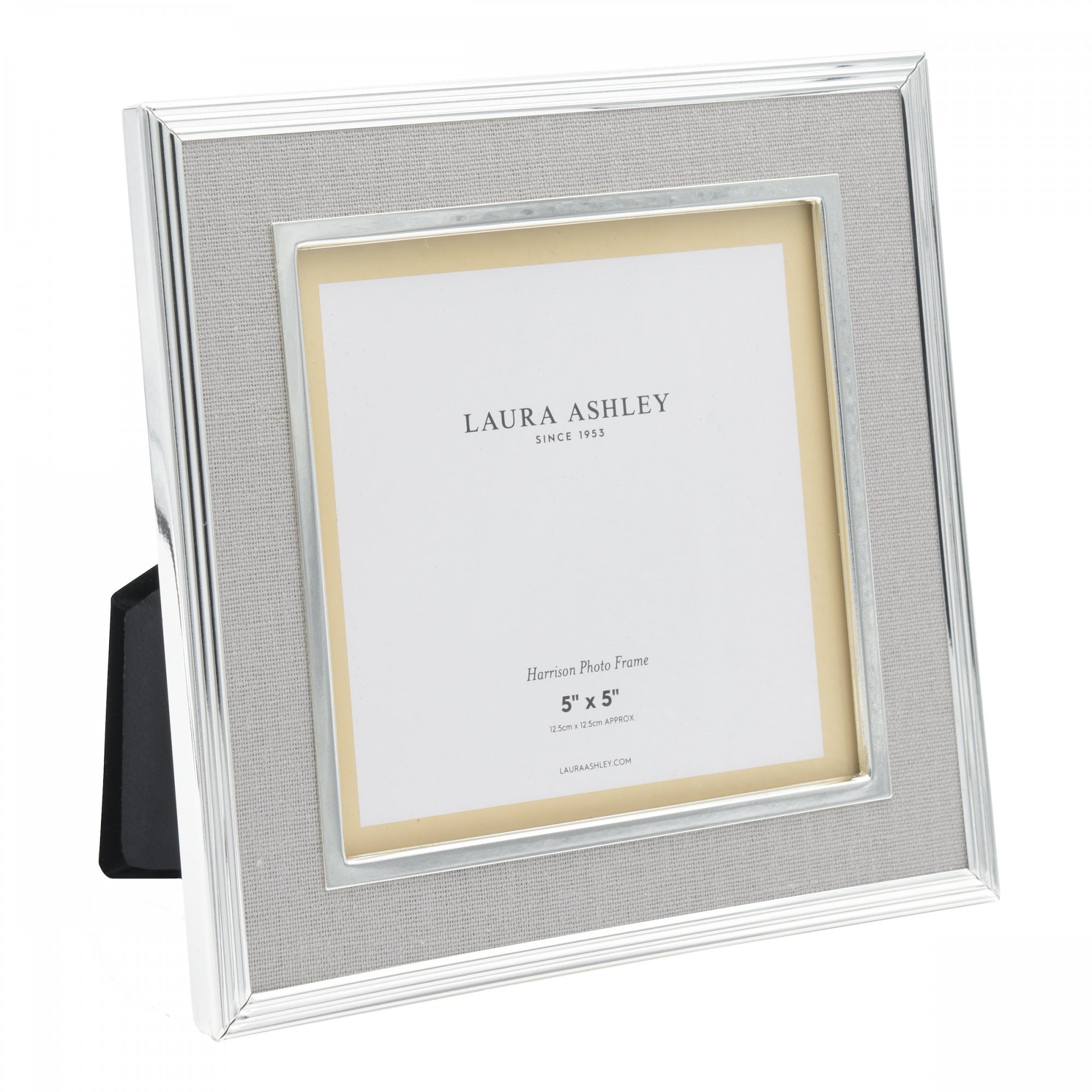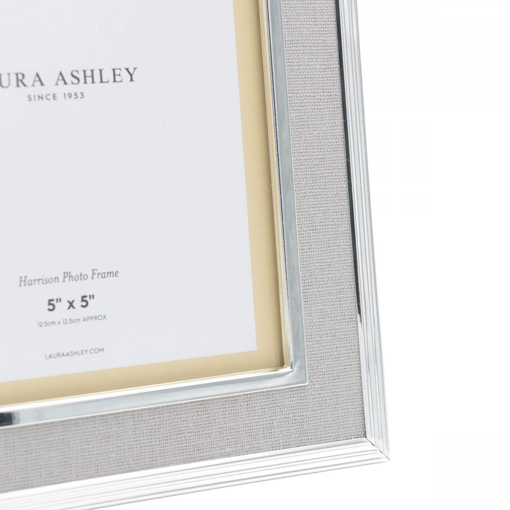 A silver-plated metal frame faced with natural linen fabric and raised beading, the elegant Harrison photograph frame from Laura Ashley is perfect for displaying your most treasured image. The understated opulence of this silver and linen photo frame will enhance any interior. The square size holds one 13x13cm approx. (5" x 5") photo. Please note, the size refers to the size of the photo within the frame, which usually allows for an overlap of approximately 5mm.