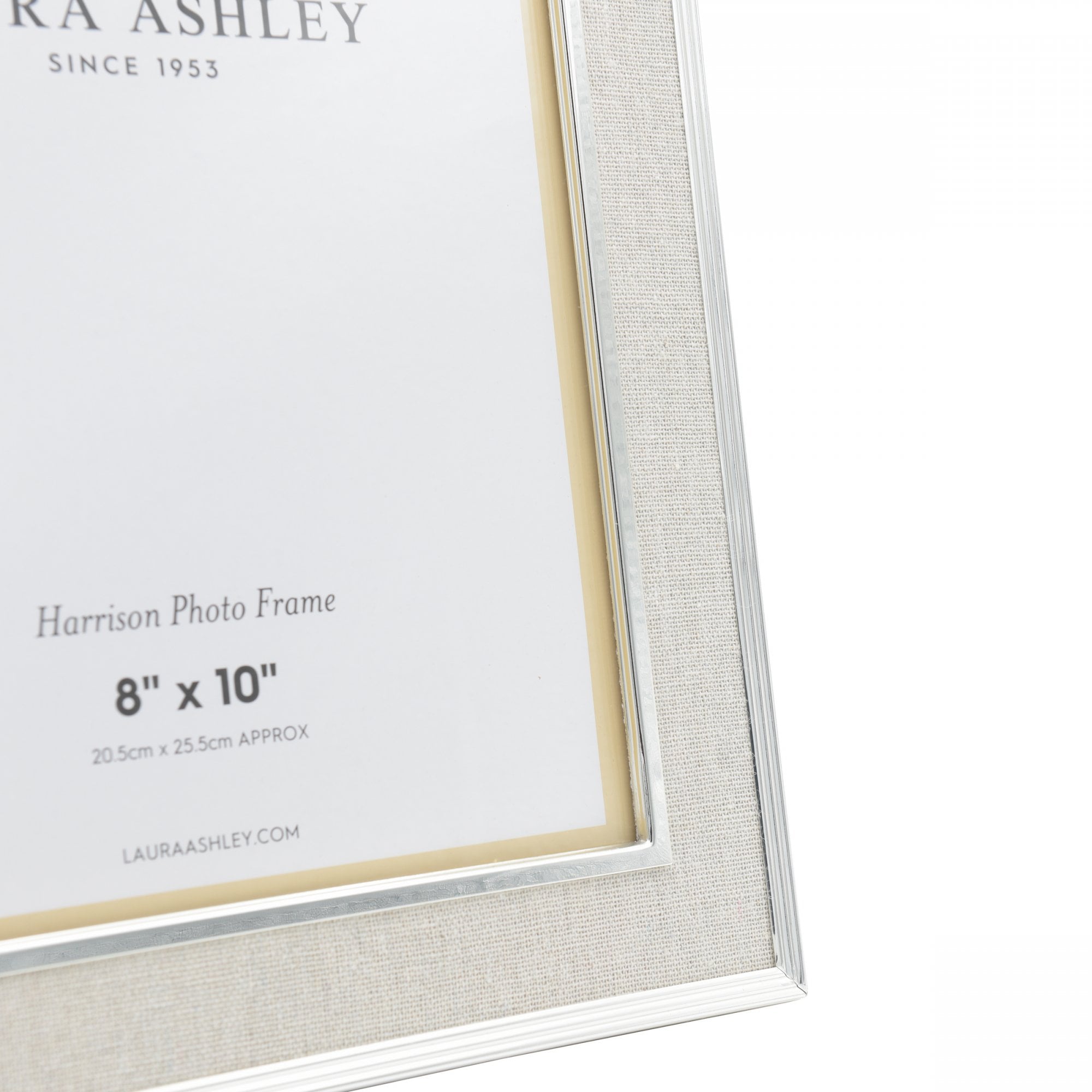 With a silver-plated metal frame faced in pale charcoal linen fabric and with raised beading, the elegant Harrison photograph frame from Laura Ashley is perfect for displaying your most treasured image. The understated opulence of this silver and grey photo frame will enhance any interior. Please note, the size refers to the size of the photo within the frame, which usually allows for an overlap of approximately 5mm.