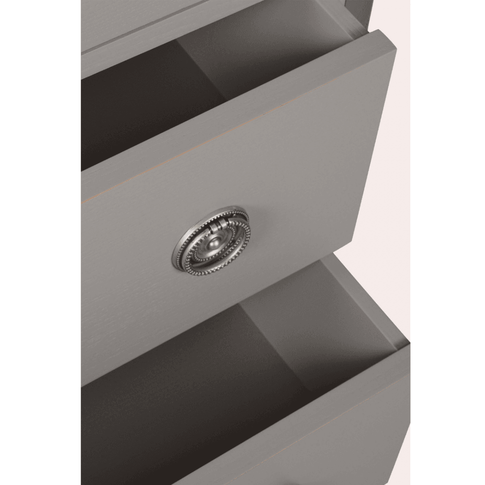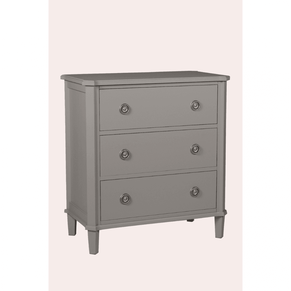 The Laura Ashley Henshaw Three Drawer Chest is a versatile addition to any decor. It is crafted with a combination of solid wood and veneered elements. With its three spacious drawers, this chest offers ample storage capacity. It is hand-painted and finished with a clear lacquer, ensuring a low maintenance and impressive appearance. Attaching the legs is the only step required for enjoying this piece, as full assembly is not necessary.