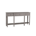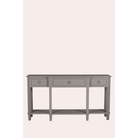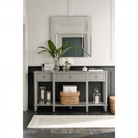 Introducing the Laura Ashley Henshaw three-drawer triple console table, a stunning addition to elevate any room. Its elegant stepped design brings a touch of drama and sophistication to your home. This table offers ample storage space with its three drawers - one large and two small - along with a full-width fixed lower shelf, perfect for showcasing your cherished belongings.