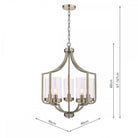 The Joseph chandelier from Laura Ashley was inspired by the draped form of a Moroccan tent. This unusual chandelier has five individual lamp holders, each supporting a clear glass cylinder shade, held on arms that continue upwards to form an open lantern-style framework. It is finished in warm antique brass.