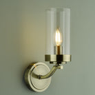 The Joseph single wall light from Laura Ashley is an unusual wall fitting featuring a lamp holder, finished in warm antique brass, which supports a clear glass cylinder shade.