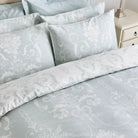 Elegant chandeliers and romantic rose bouquets decorate this luxurious 200 thread count pure cotton sateen pillowcase pair. A Laura Ashley classic, the timeless Josette design combines simplicity with natural glamour in a new, contemporary duckegg blue shade.