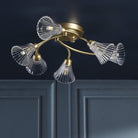 Lanton Antique Brass & Ribbed Glass Semi Flush Ceiling Light