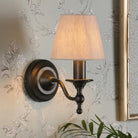 The Ludchurch wall light by Laura Ashley is a timeless classically styled candlestick product. This is a contemporary take on an English heritage style in a sophisticated plated black finish. Laura Ashley’s Ludchurch single wall light is a versatile addition to your home. Pair with out 14cm Bray shade. Bulb not included; takes 1 x 40W max SES Candle.