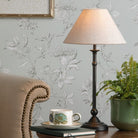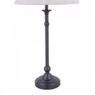 The Ludchurch Table Lamp by Laura Ashley is a timeless classically styled candlestick product. This is a contemporary take on an English heritage style in a sophisticated plated black finish. It comes as a complete with a linen shade in a tapered shape. Comes with a black braided fabric cable with inline rocker switch. Bulbs not included; Takes 1 x 40W max SES Golf ball.