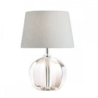 The pretty and petite Laura Ashley Lydia table lamp base is a globe featuring hand-cut, vertically faceted crystal glass and a bright polished chrome fitting. This charming table light is small and perfectly formed, ideal for the bedside or an occasional table.