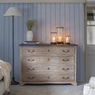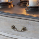 This Swannington Wooden four drawer chest cabinet is a benchmark in fine craftsmanship. From the elegant lines of its thick serpentine fronted drawers to its contrasting chic slate grey top, this chest would look at home in a living room, bedroom or dining room. Each drawer is finish using delicate yet sturdy handles in an antique brass finish as well as central key holes which are for decorative use only. Laura Ashley’s beautiful Swannington Wooden Cabinet Collection features four drawer and two drawer chests, entertainment unit, console and mirror.