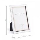 Drawing on Art Nouveau, with its sinuous curves in gorgeous tones of gold the Glasbury photograph frame from Laura Ashley is an object to be treasured for itself, as well as for the moment-in-time it displays. Holds one photo. Free standing, for both portrait or landscape orientation. The frame is silver-plated metal, glass fronted, with a black velvet backing.