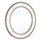 With a truly luxurious champagne leaf finish, Laura Ashley’s round Nolton mirror will bring style and elegance into your home. It features a classical milgrain beaded edging to the sectional mirror border. Not suitable for bathroom or outdoor use.
