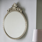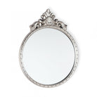 In an update of the ornate French baroque style, the round Overton mirror from Laura Ashley has a slender circular frame. This frame features a circlet of studs that stand proud of the surface within the sunken rim. This gorgeous round mirror is crowned by a highly decorative carved-effect pediment and is painted in a luxurious silver finish.