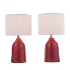 The Penny Table lamps from Laura Ashley are the perfect set for the bedroom, a long console or dresser. In a simple bottle shape, each lamp comes complete with a natural oatmeal linen shade. The rosewood red glaze has a very subtle crackle glaze effect. With hand-carved horizontal ribbing, these versatile lamps can be used all around the home. Please note: This is a twin pack (these table lamps are not available individually).