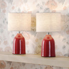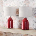 Penny Red Ceramic & Polished Chrome Table Lamp (Twin Pack)