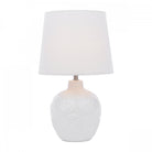 Enhance your décor with the gorgeous Redhall Table Lamp. Featuring a ceramic base, this table lamp is elegantly embossed with a leaf-style pattern and paired with an oatmeal linen shade.
