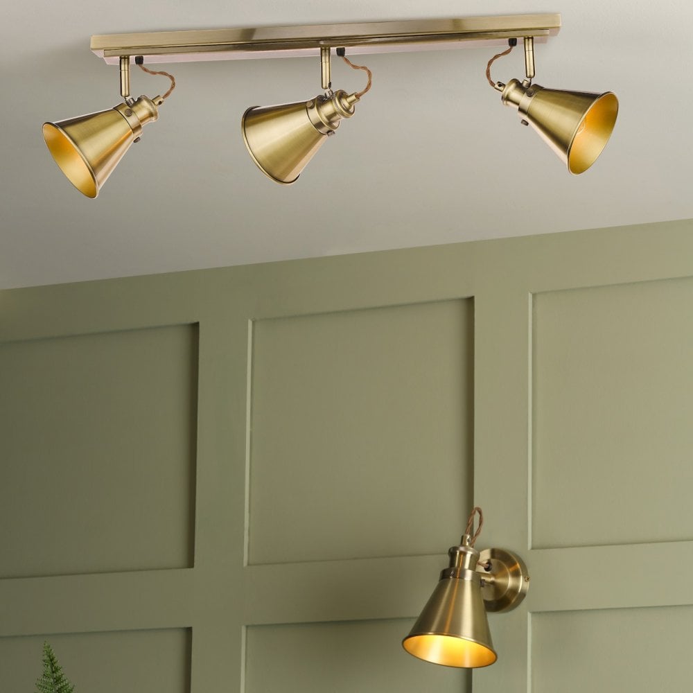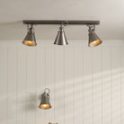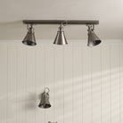 From Laura Ashley, the Rufus triple spotlight has a superior pewter finish that will look superb in your kitchen or dining room, above your main work surface area. This is a quality ceiling light with three cone shaded spotlights of spun metal with a neat rolled edge, circular ceiling plate. The solid shades of the three adjustable spotlights can be tilted and turned to direct light exactly where you want it.
