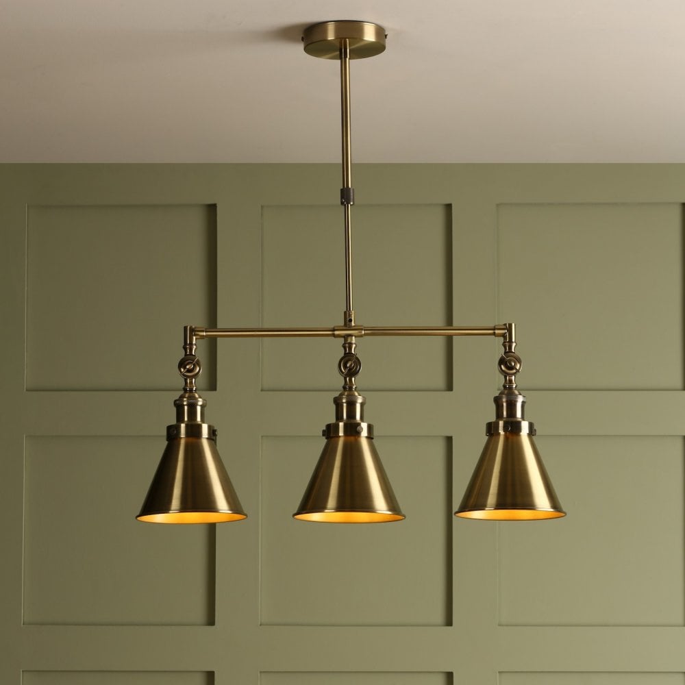Rufus Antique Brass 3 Bulb Bar Pendant Light
