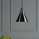 In an attractive combination of vintage, industrial and country charm, Laura Ashley’s Rufus single light pendant fits effortlessly into kitchens and dens. Bold lines and angular shapes lend a sophisticated, contemporary touch that looks fantastic against bare brickwork. This contemporary hanging ceiling light boasts industrial appeal with a cone-shaped metal shade and matching fittings with engineered detailing in a quality finish. Height adjustable to suit your space, it looks fantastic above a dining table, low over a task area, or in a line of three or five over an bar or island, and of course is brilliant for the higher-ceilinged room. Choose a finish to accessorise your kitchen or diner, perhaps matching other fittings such as door handles.