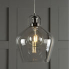 For instant finesse, try the Rye pendant lampshade from Laura Ashley, which features a clear glass goblet with a decorative vintage polished nickel fittings.