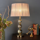 The Laura Ashley Selby Grande table lamp has an elegant spindle form threaded with faceted amber glass balls of decreasing size, poised on a round foot. Finished in warm antique brass, the Selby Grande table light will enhance any interior, whether traditional or contemporary in style.