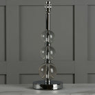 The Laura Ashley Selby table lamp base has an elegant spindle form threaded with pretty faceted clear glass balls of decreasing size, poised on a round foot. Finished in vintage polished nickel, the Selby table light will enhance any interior, whether traditional or contemporary in style.