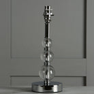 The Laura Ashley Selby table lamp base has an elegant spindle form threaded with pretty faceted amber glass balls of decreasing size, poised on a round foot. Finished in polished nickel, the Selby table light will enhance any interior, whether traditional or contemporary in style.