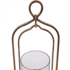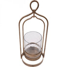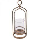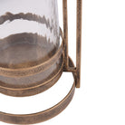 Aged champagne finish hurricane on iron featuring hammered glass which creates a beautiful effect. Part of the Loop candlelight collection.