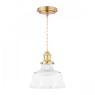 This timeless ceiling light in white glass fluted glass and Antique brass will suit any room in the house. The Theodore pendant light is height adjustable upon installation and is supported by a twisted cord suspended from a detailed ceiling rose. This ceiling light will illuminated a wide area; select a feature light bulb as the bulb is visible.