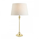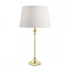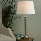 With a clear glass cylinder encapsulating a slender, warm antique brass stem, the Laura Ashley Winston table lamp is a stylish, statement piece. With ‘turned’ candlestick details and a classical form, sitting on a square pediment, this elegant table light will enhance the beauty of your favourite rooms.
