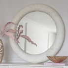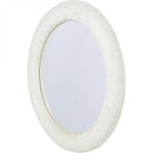 The Aspen Round Mirror is a captivating mirror made in bone to stand alone or sit proudly over our Aspen cabinet. The mirror’s sturdy rounded frame is made entirely in beautiful intricate bone inlay, which has a lustrous quality reminiscent of mother of pearl. Perfectly balanced in both form and function, the Aspen Round Mirror brings an air of refinement to any interior. Due to its weight and size, the item should be installed by a professional.