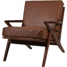 The Atherton Wooden and Upholstered Leather Armchair is a relaxed yet stylish occasional chair that looks stunning in any interior. Crafted from solid mango wood with a smooth dark stain, its design has a subtle mid-century flair. The real leather upholstery, in a soft brown tone, boasts a smooth, luxurious finish that adds to its sophistication. The cushioned seating ensures comfort, while the leather perfectly complements the wood’s natural grain.