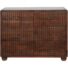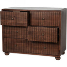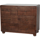 The Carmel Six Drawer Chest is a beautifully crafted and elegant piece of cabinet. It features intricately carved ridged lines with soft, rounded contours, designed to bring timeless style to any room. The chest includes six evenly spaced drawers, in three over three format, creating a balanced and symmetrical design. Crafted from solid mango wood, the chest is topped with an inset layer of luxurious marble in an off-white colour. Small complimentary brass knobs enhance the Art Deco inspired aesthetic.
