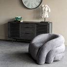Enhance your home decor with the Casa Upholstered Curved Snug Chair in Grey, a signature piece from Libra Interiors that embodies luxury, style, and modern aesthetics. This elegant chair is crafted to make a statement, featuring plush padding and a unique curved silhouette. Also available in Cream.